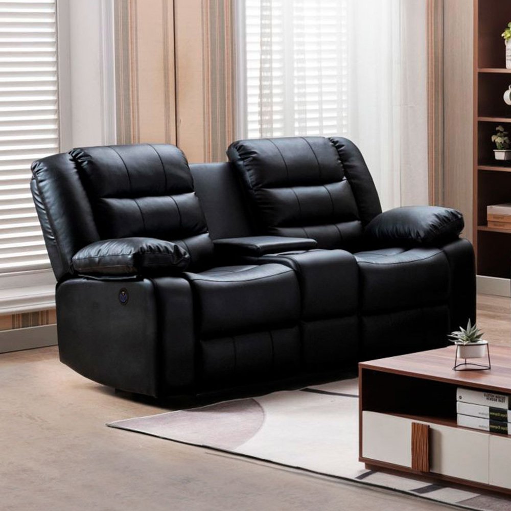 Poltrona Reclinável Elétrica Sala de Cinema Hollywood 2 Lugares Baú/massagem/aquecimento Pu Preto G3