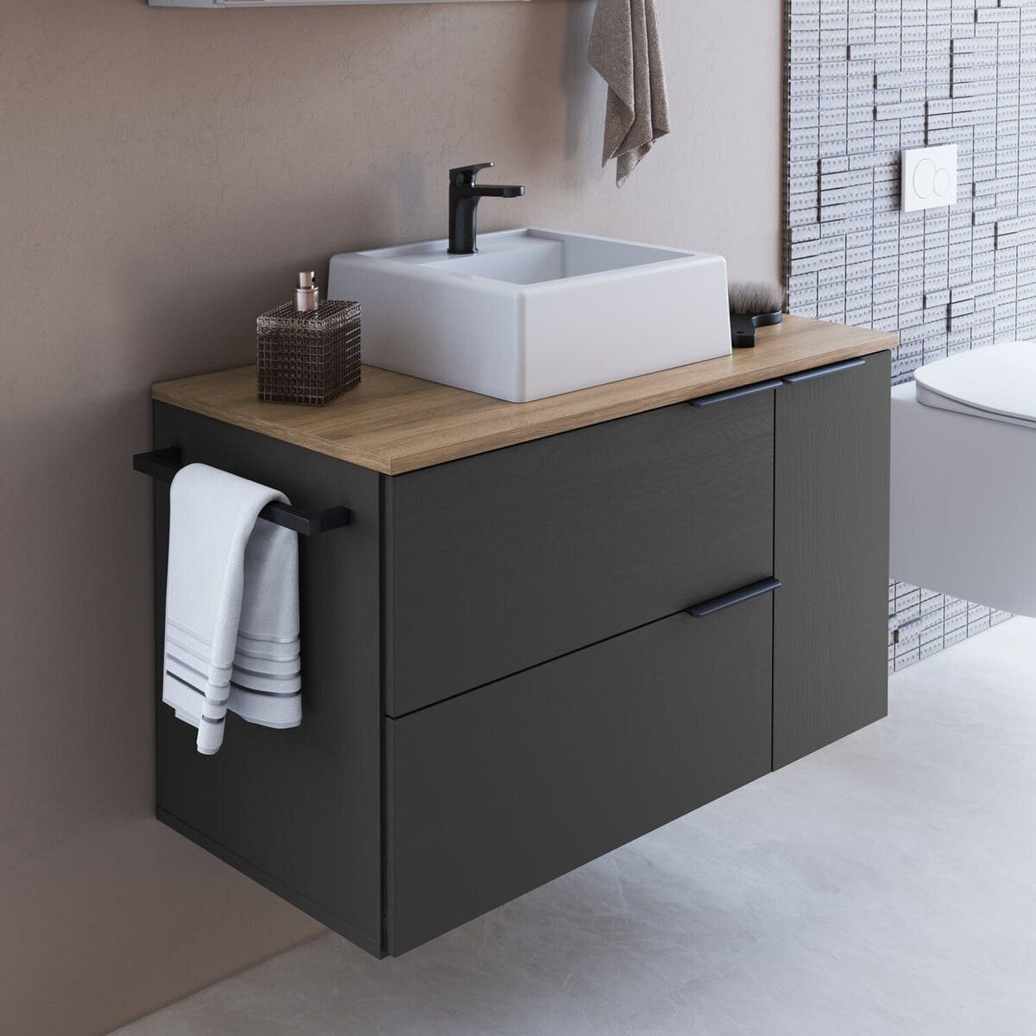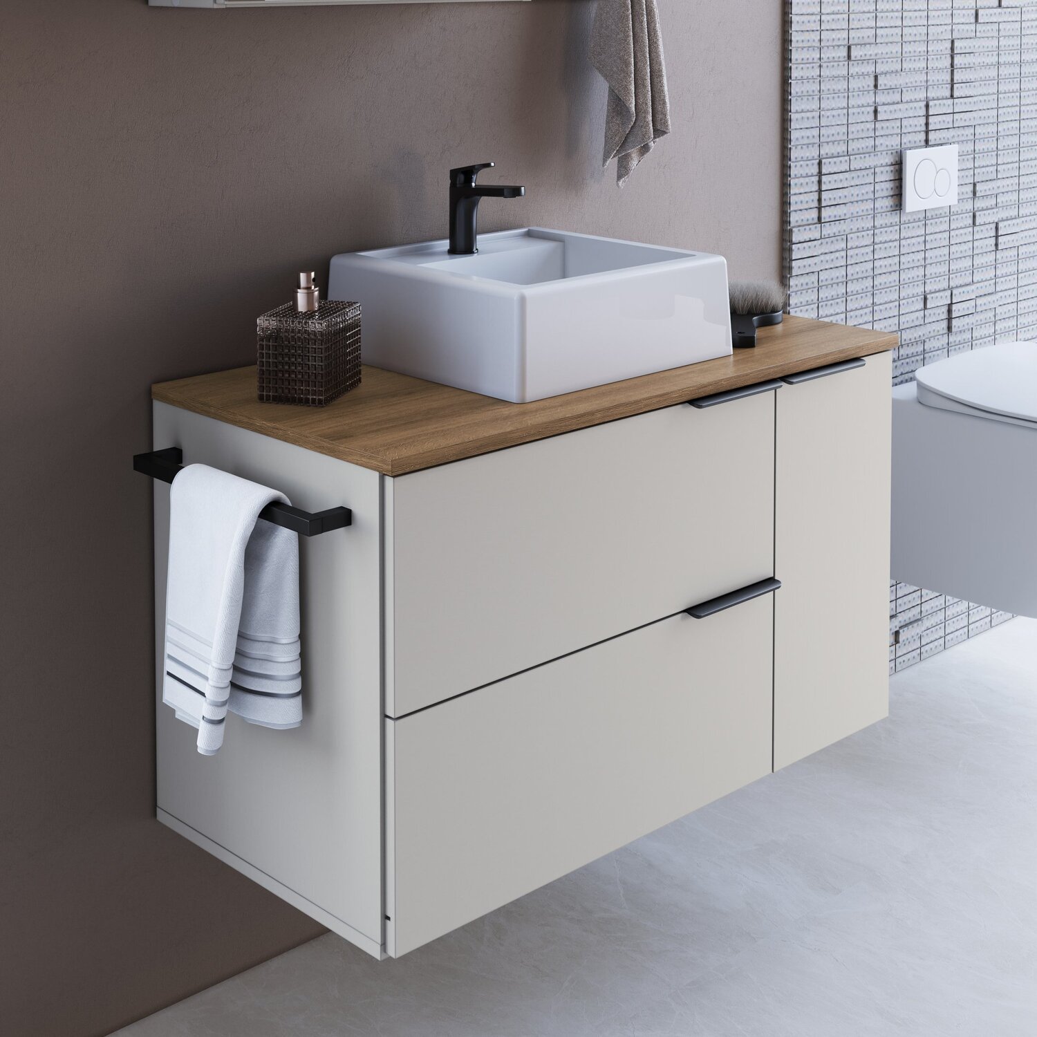 Gabinete de Banheiro Suspenso 80cm com 1 Toalheiro 2 Portas e 1 Gaveta com Cuba