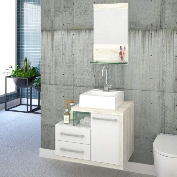 Gabinete para Banheiro Suspenso com Cuba 1 Porta 2 Gavetas Jazz Móveis Bosi