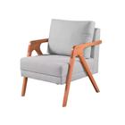 Poltrona Mona Luxo Madeira Maciça Tecido Linho Cinza Claro