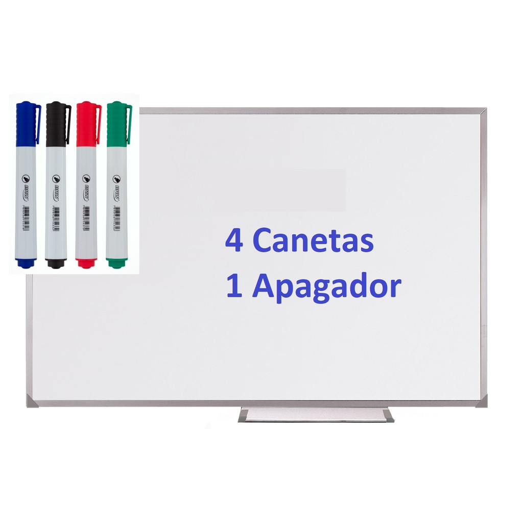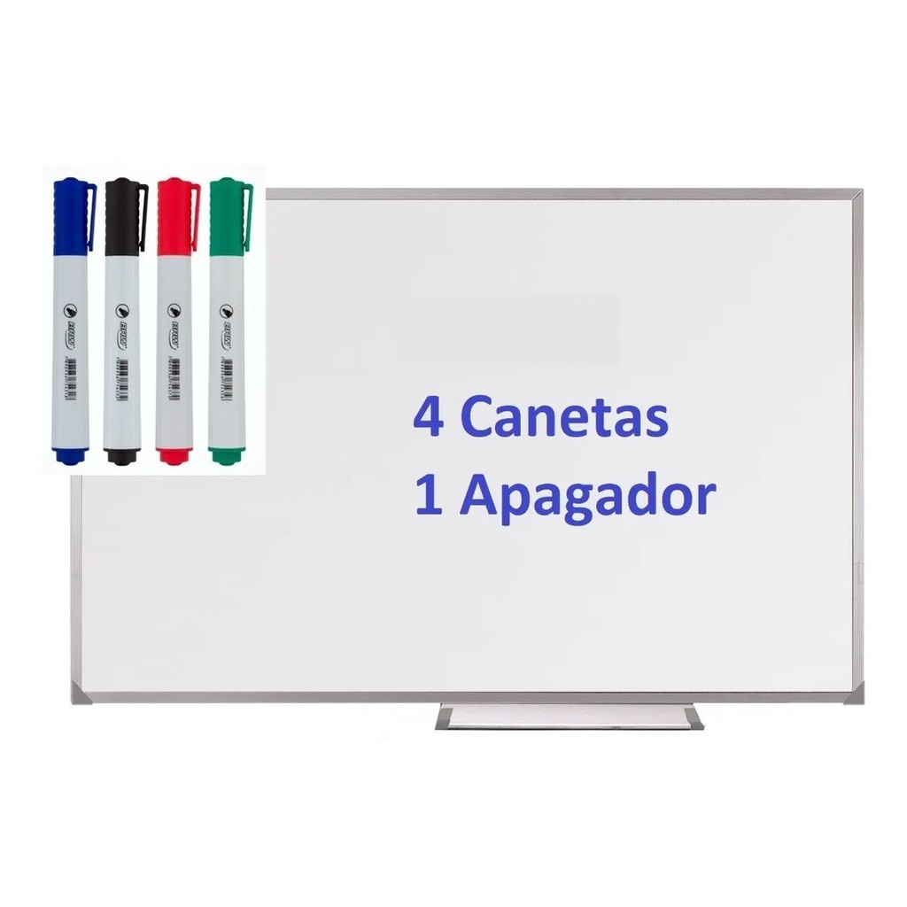 Lousa Quadro Branco Moldura De Aluminio 80x60 Cm + 4 Canetas + Apagador