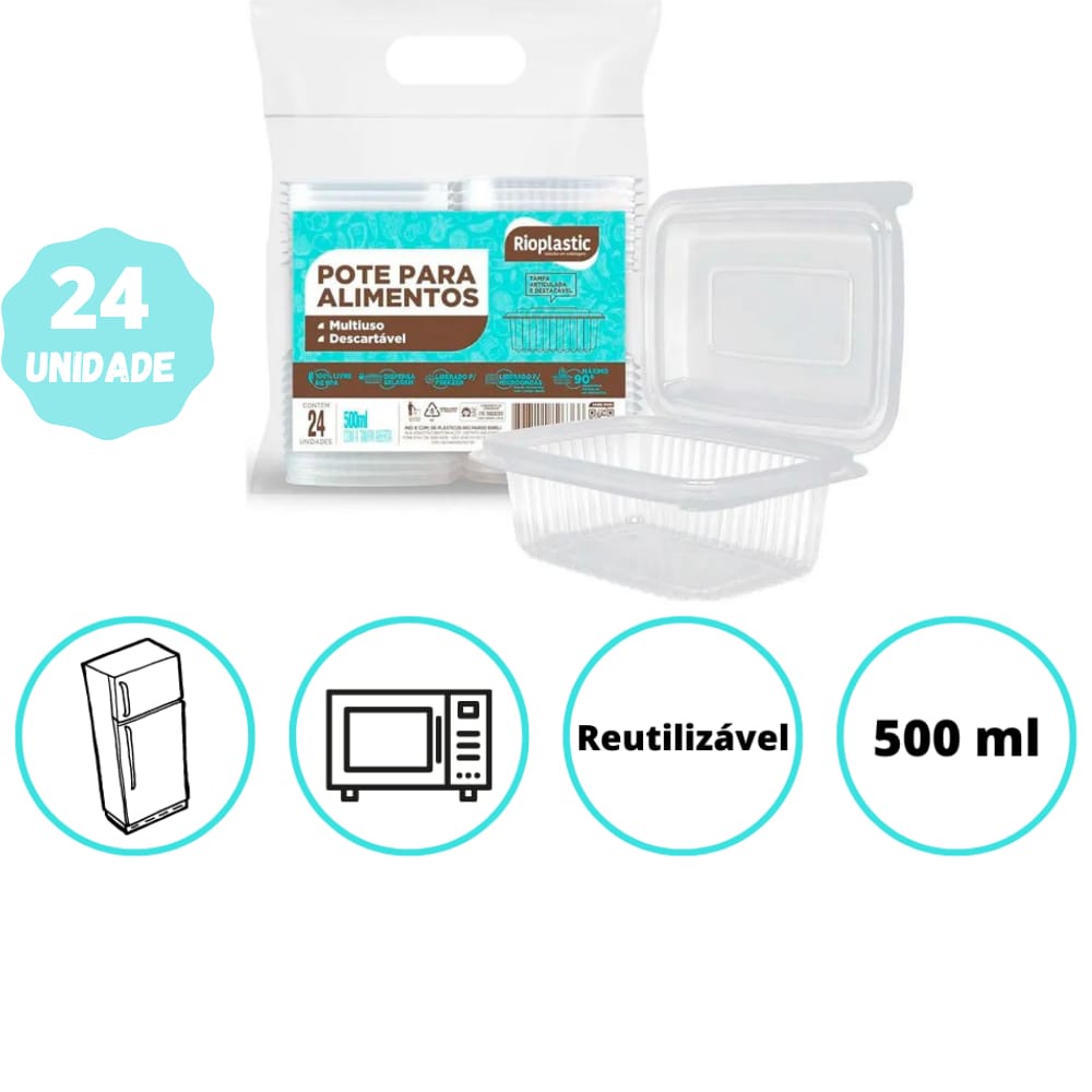 24 Potes Descartáveis marmita 500ml Freezer Microondas