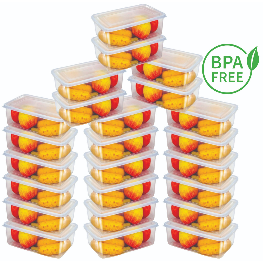 24 Potes 250ml/500ml Retangulares Descartáveis Com Tampa Para Freezer e Microondas Prafesta