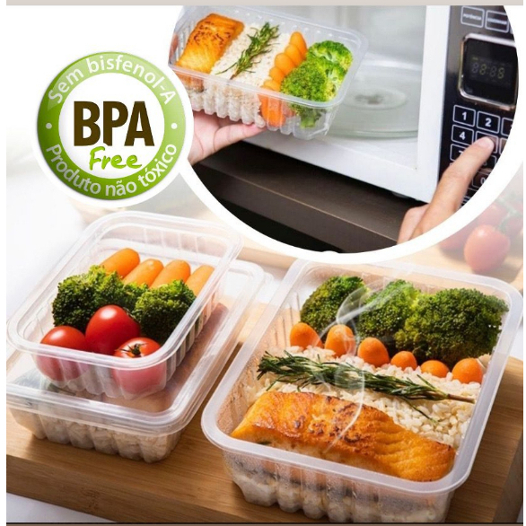 Kit 24 Potes Marmita Descartável 250ml Retangular Fitness Microondas Freezer Fit Barato