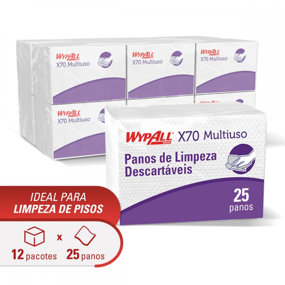 Pano de Limpeza WypAll® X70 Plus Multiuso Dobrado em V (59 cm x 40 cm) 25 Panos - Caixa com 12 Unidades