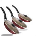 Jogo de Frigideiras 3 peças Caribe Vermelho Preto Antiaderente com Tampa de Vidro