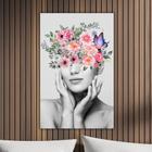 Quadro Decorativo em Tela Abstrato Mulher com Flores na Cabeça 100x60cm para Sala Recepção Escritório Quarto
