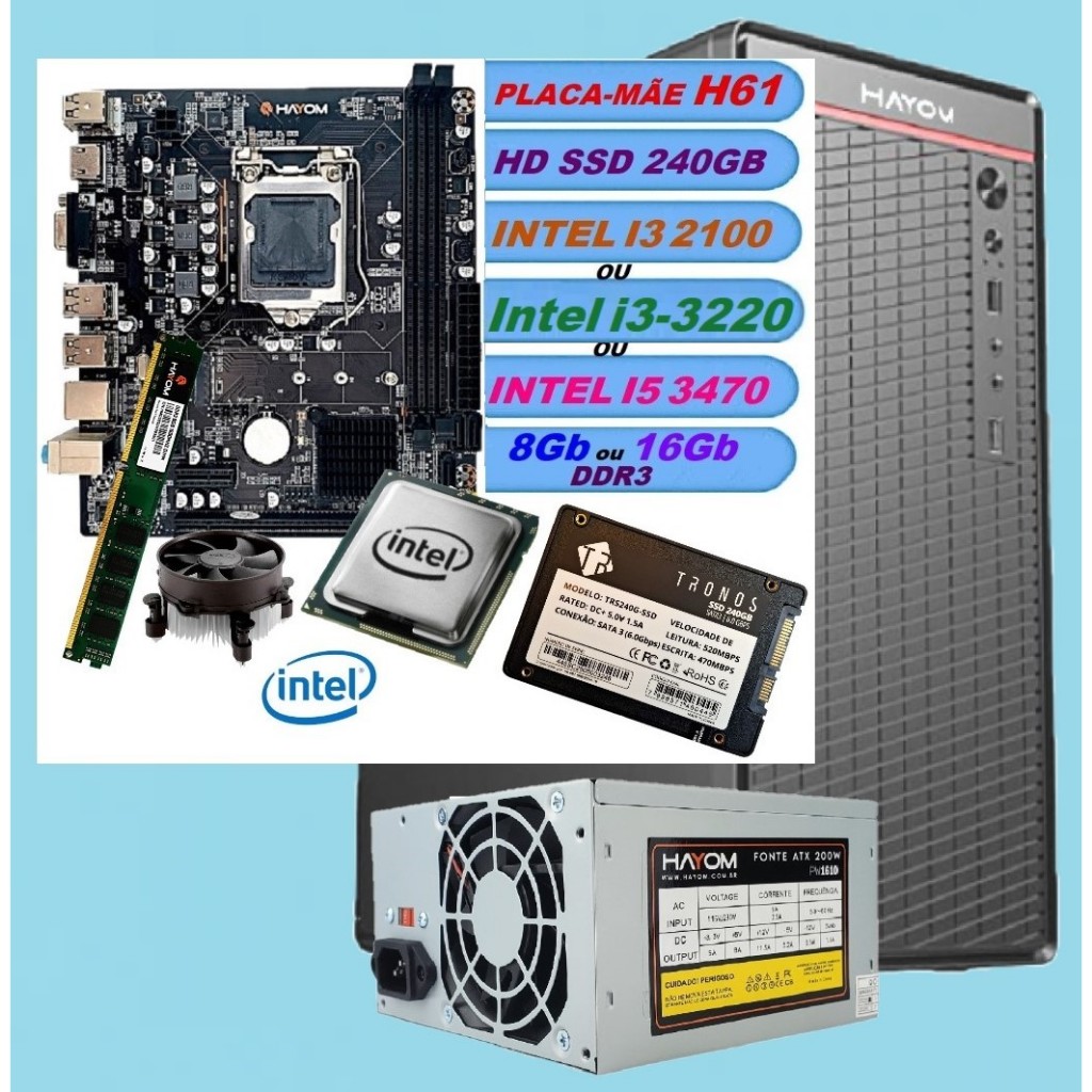 COMPUTADOR pc cpu NOVO INTEL i3 ou i5 MEMÓRIA 8GB ou 16GB SSD HD 240GB FONTE 200W com GARANTIA GAMER