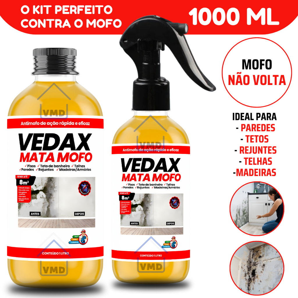 Kit Mata Mofo Não Volta Anti Elimina Parede Teto Piso 1L Telha Armário Madeira Bolor Mactra + Spray