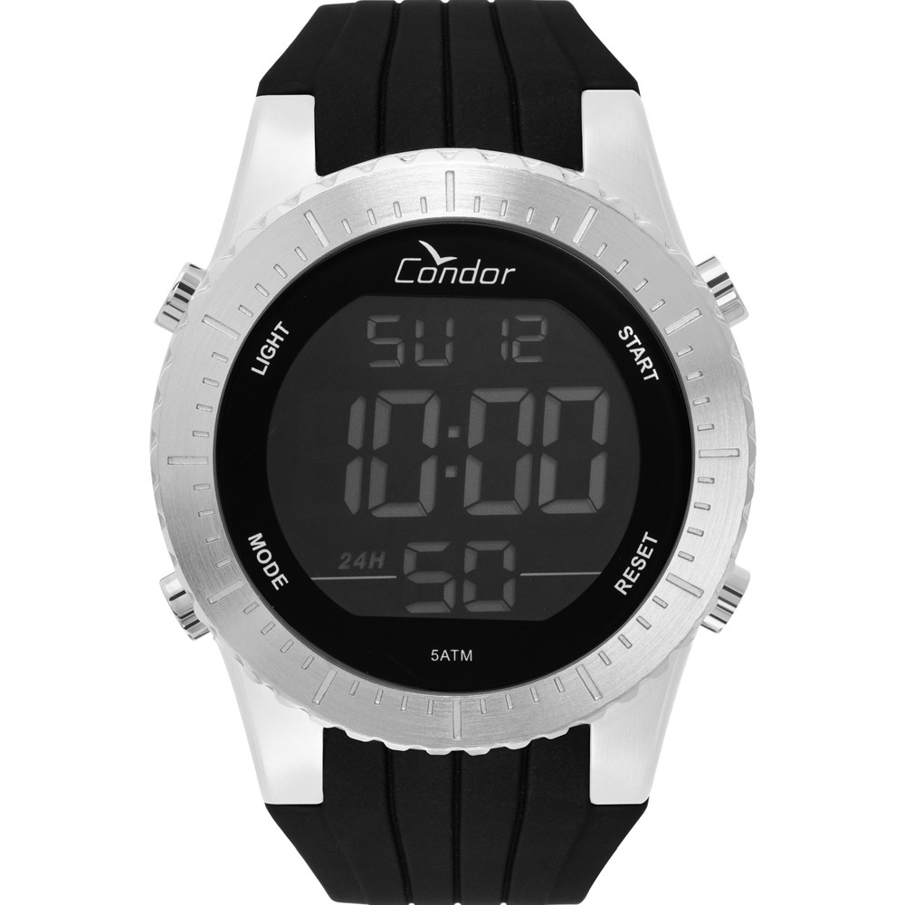 Relogio Condor original Masculino digital prata preto pulseira de borracha kit COBJ3463AC/K3K