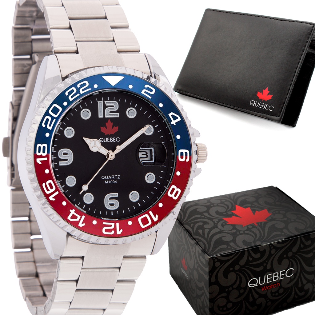 Kit Relógio Masculino QUEBEC Analógico QB009 - Prata, Azul e Vermelho + Carteira