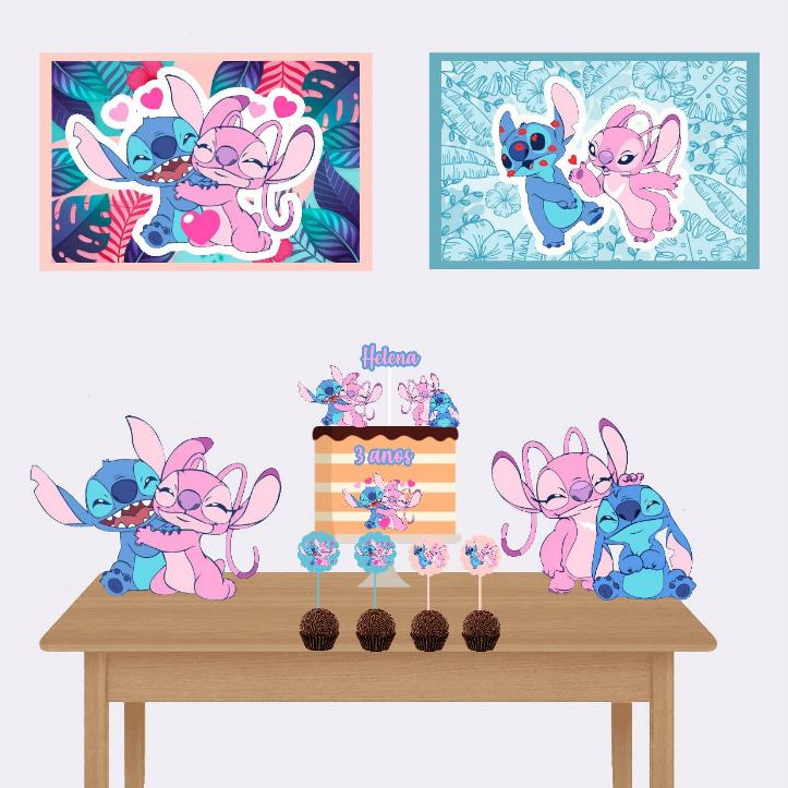 Kit Festa Stitch e Angel | Personalizado com nome e idade | Só um bolinho | Decoração | Festa em Casa