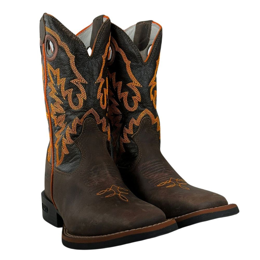 Bota Texana Country Masculina Em Couro Liso Marrom Bico quadrado CAMPERO