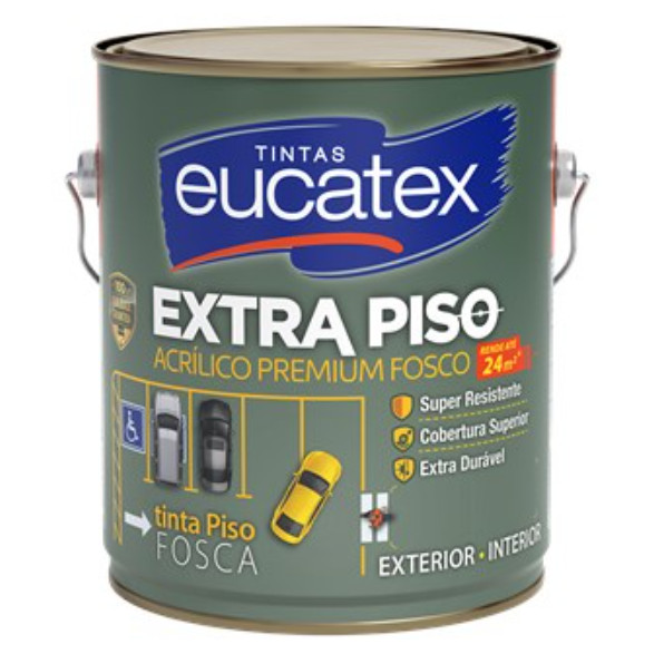 Tinta Acrilica para Paredes Piso Estacionamento 3,6l Eucatex Extra Piso Garagem Parede Quadra Demarcação