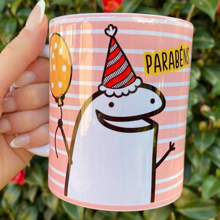 Caneca De Aniversário Flork Meme 325 Ml De Porcelana para Presente Personalizada