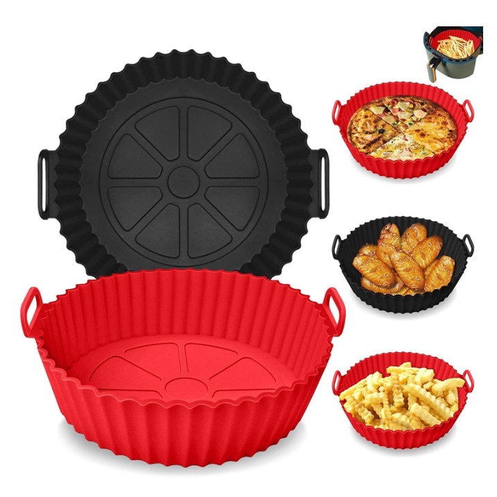 Kit 2 Forma de Silicone para Air Fryer Cesto Fritadeira Elétrica Micro-Ondas Forno Reutilizável 18 Cm