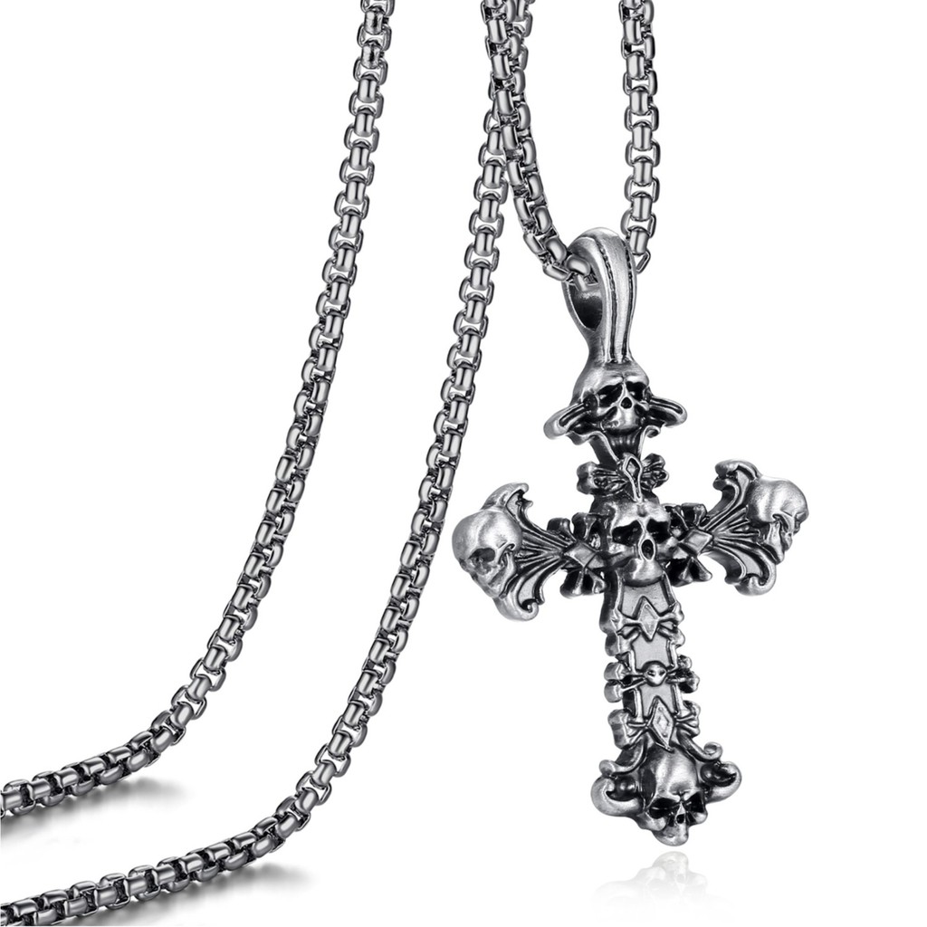 Colar Feminino Masculino Pingente Cruz Gótica Caveiras Acessório Vintage Tribal 29g
