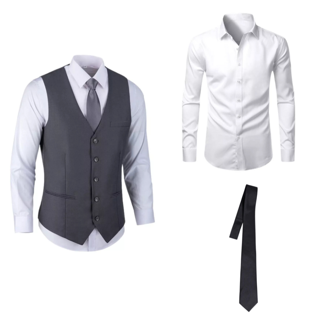 Kit Colete Social Masculino + Camisa Social + Gravata Social - P/Padrinhos