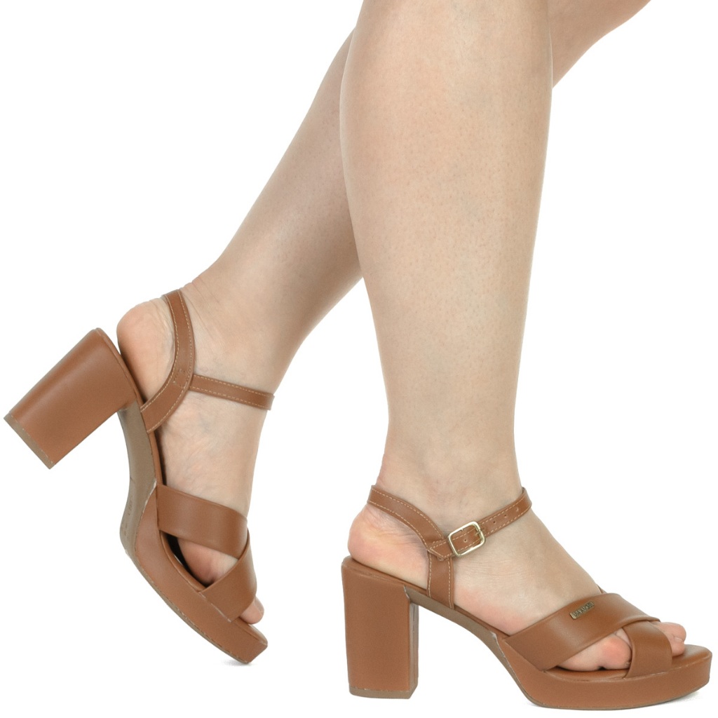 Sandália Feminina Salto Alto Meia Pata Plataforma Confortável Via Angel 7101 Caramelo