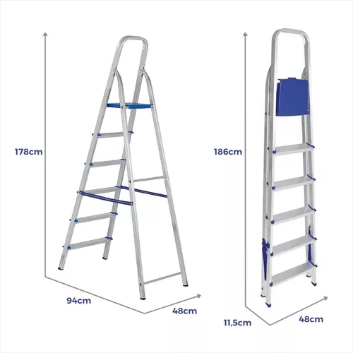 Escada 6 Degraus Residencial Dobrável Em Aluminio Com Inmetro p/ Até 120kg