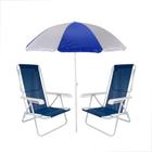 Kit Guarda Sol Fashion 1,8m 2 Cadeira Alta Sannet Para Praia Piscina Camping Azul Marinho - Mor