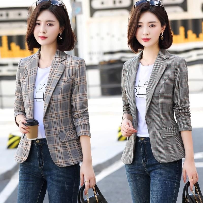 S-5XL Casaco Blazer Feminino Manga Longa Slim Primavera Outono Moda Casual Elegante Fato De Trabalho De Escritório Mais Tamanho Khaki Gray