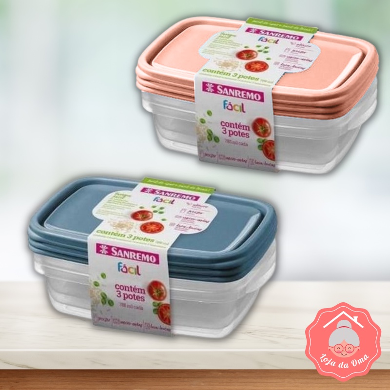 Kit com 3 Potes Retangular Plástico Sanremo 785ml / Marmitinhas / Marmita fit / Marmita pra semana / Marmita congelada / Pote microondas