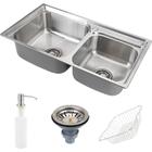 Cuba para cozinha pia dupla em aço inox com acessórios com lixeira Nukini e Torneira Gourmet