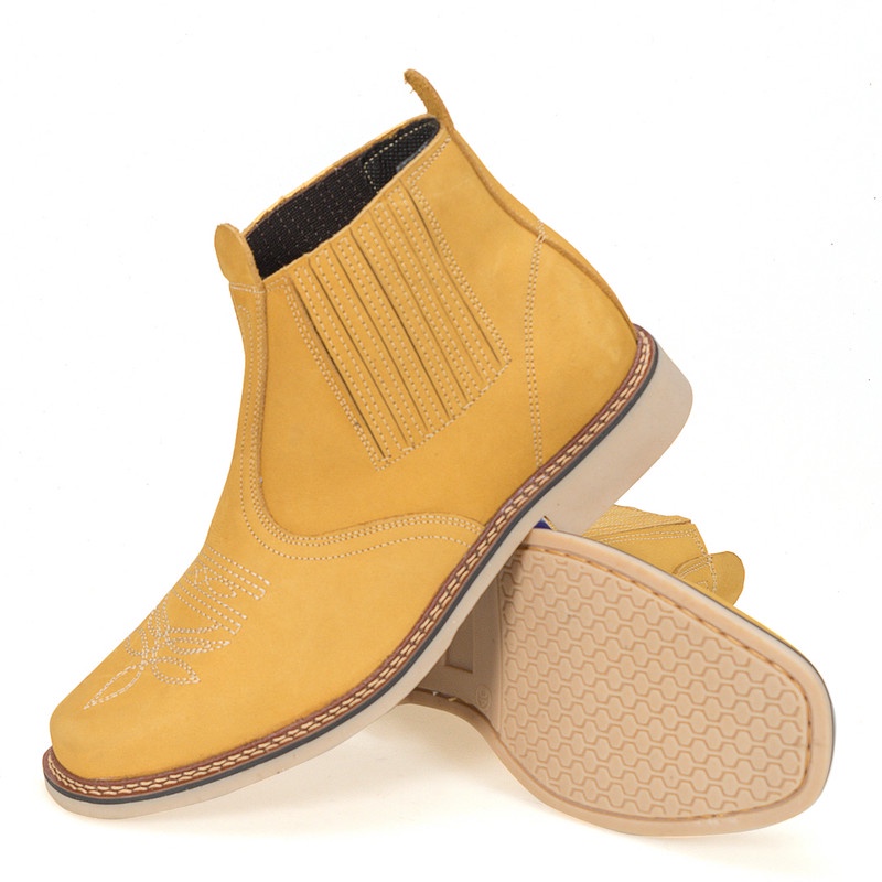 Botina Masculina De Elástico Couro Legítimo Amarela ou Palha, Cavalgada, Vaqueijada, Bota Botina Country Ref 2002