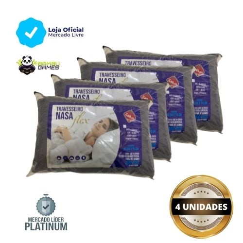 Kit 4 Travesseiro NASA Branco Alto Original Capa em algodão Não afunda Macio Confortável Viscoelástico 17cm