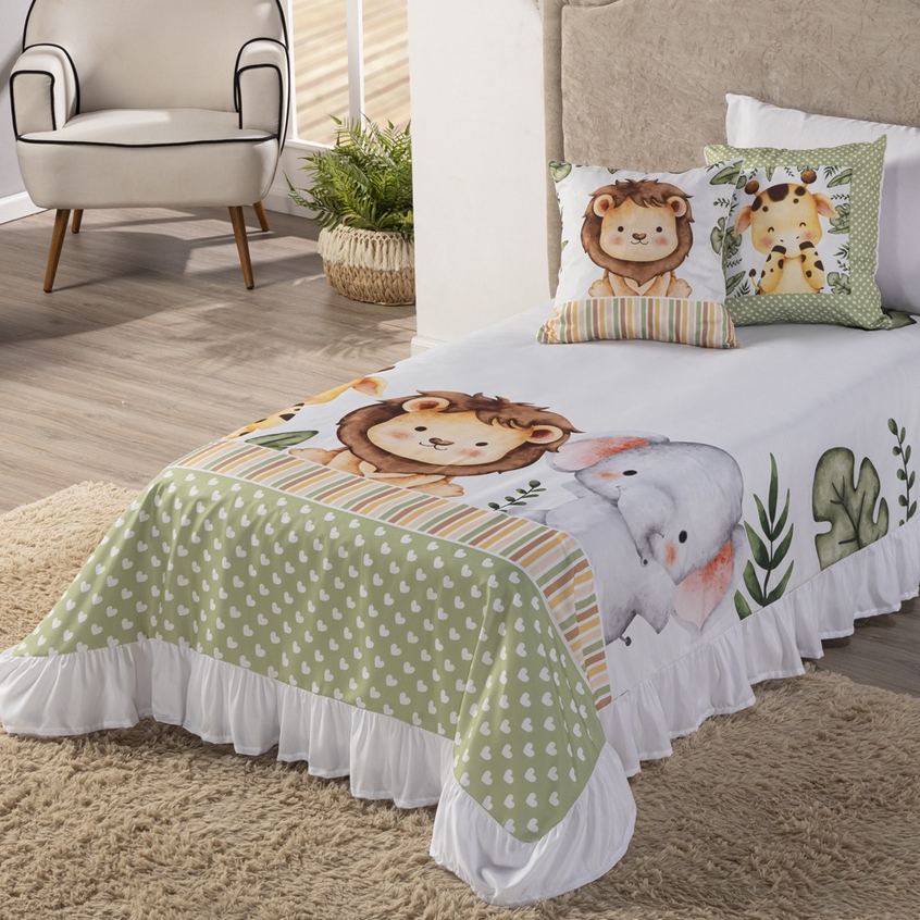 Kit Cobre-Leito Infantil Solteiro 6 Peças –1,70x2,30 | Decoração e Conforto para Quarto/ Safari Baby