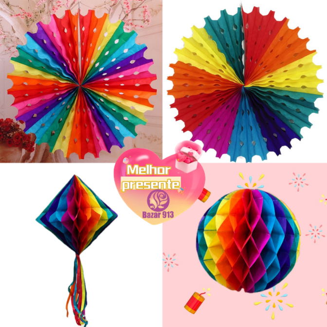 Kit 5 Enfeite Decoração De Papel Colorido Várias Modelos Para Festa Junina Juliana Decoração Arraial