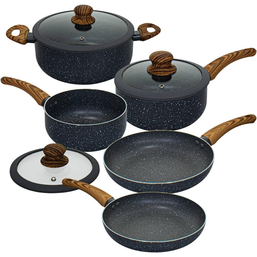 Jogo de Panelas Antiaderente Ceramica Cooktop Fogão Indução Kit 5 Peças Conjunto Marmol