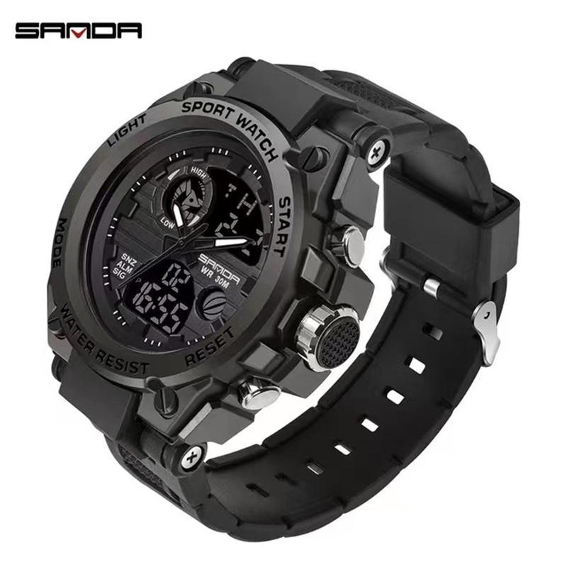 SANDA Fashion Casual Masculino Relógio Esportivo À Prova D 'Água Dual Display Estilo Masculino Relógio Militar