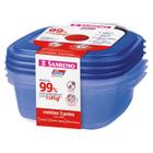 Conjunto de Potes Quadrados 3 Peças Sanremo em Polipropileno – Transparente/Azul