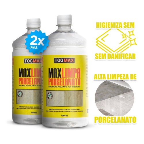 Kit 2 Max Limpa Porcelanato Mármores Granitos Pisos Rústicos Azulejos Uso Diário ou Limpeza Pesada Grosseira 1 Litro Togmax