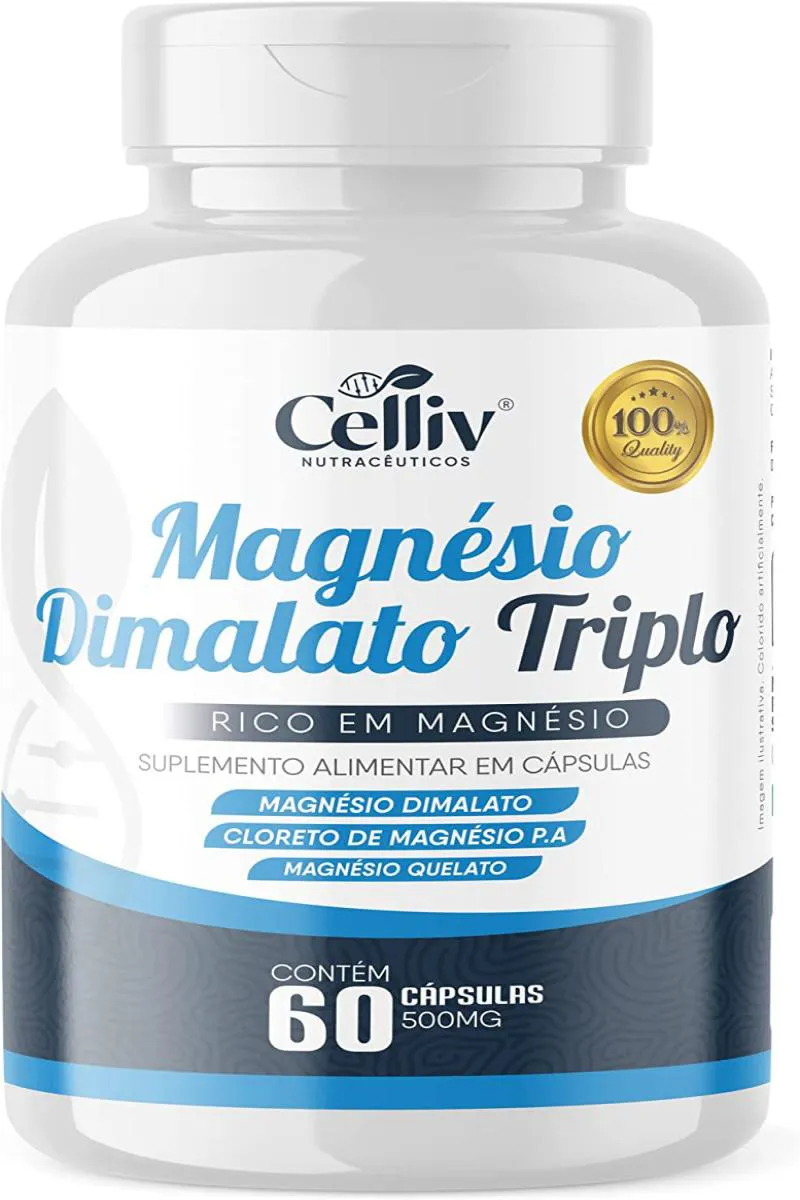 MAGNéSIO DIMALATO TRIPLO (DIMALATO, QUELATO E CLORETO DE MAGNéSIO P.A) 60 CAPS CELLIV