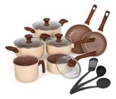 Jogo de Panelas 10 Peças Mimo Style Crema Fogão a Gás Indução Vitrocerâmico Panela Caçarola Frigideira Leiteira 3 Utensílios