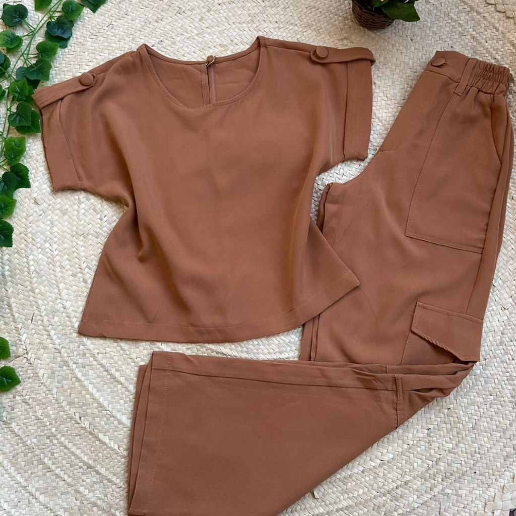 Conjunto de Alfaiataria Blusa manga curta e Calça cargo | Conjunto de duas peças casual de verão