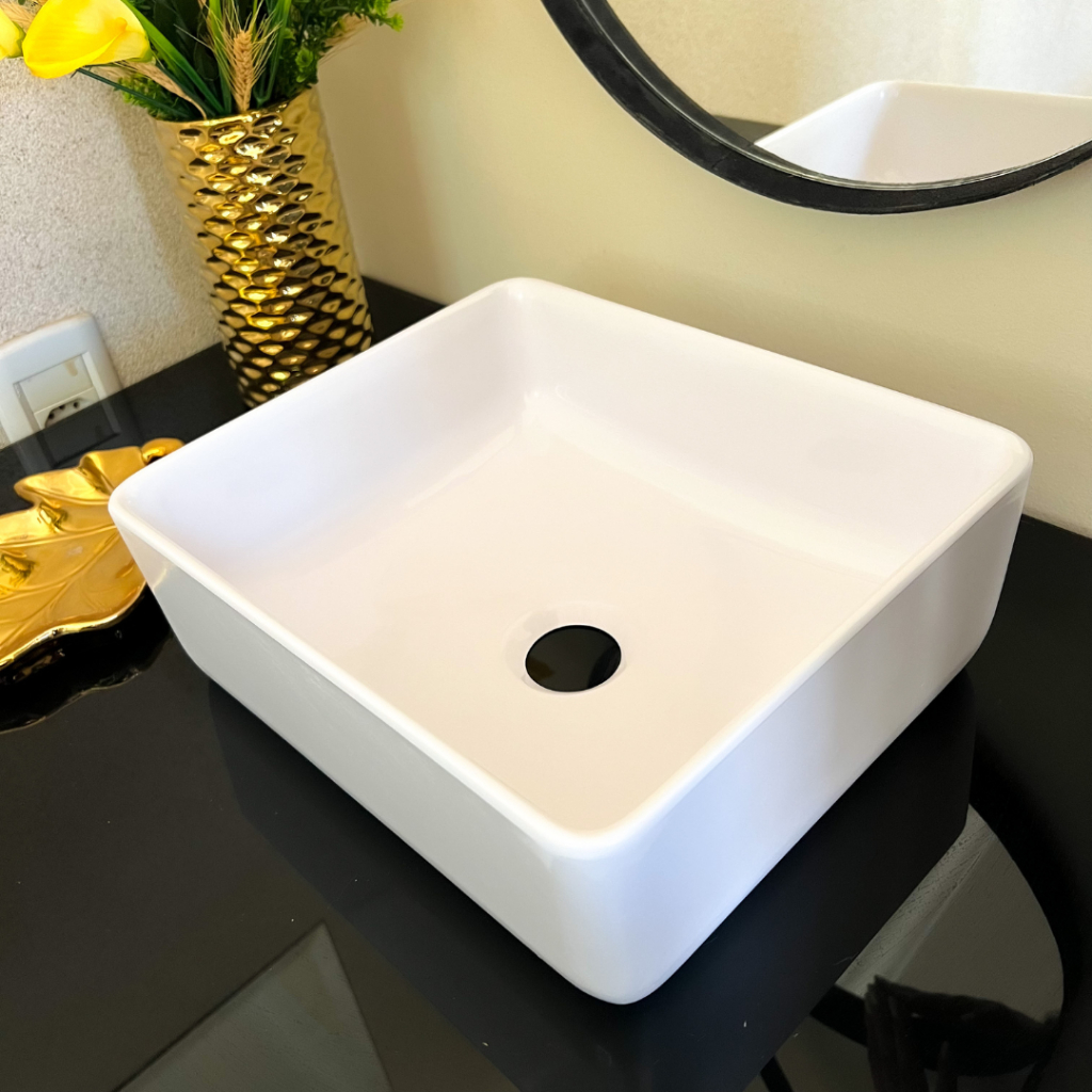 Cuba para Banheiro de Sobrepor ou Apoio Pia de Lavabo de 35cm Molokai 100% Louça Branca Brilhante