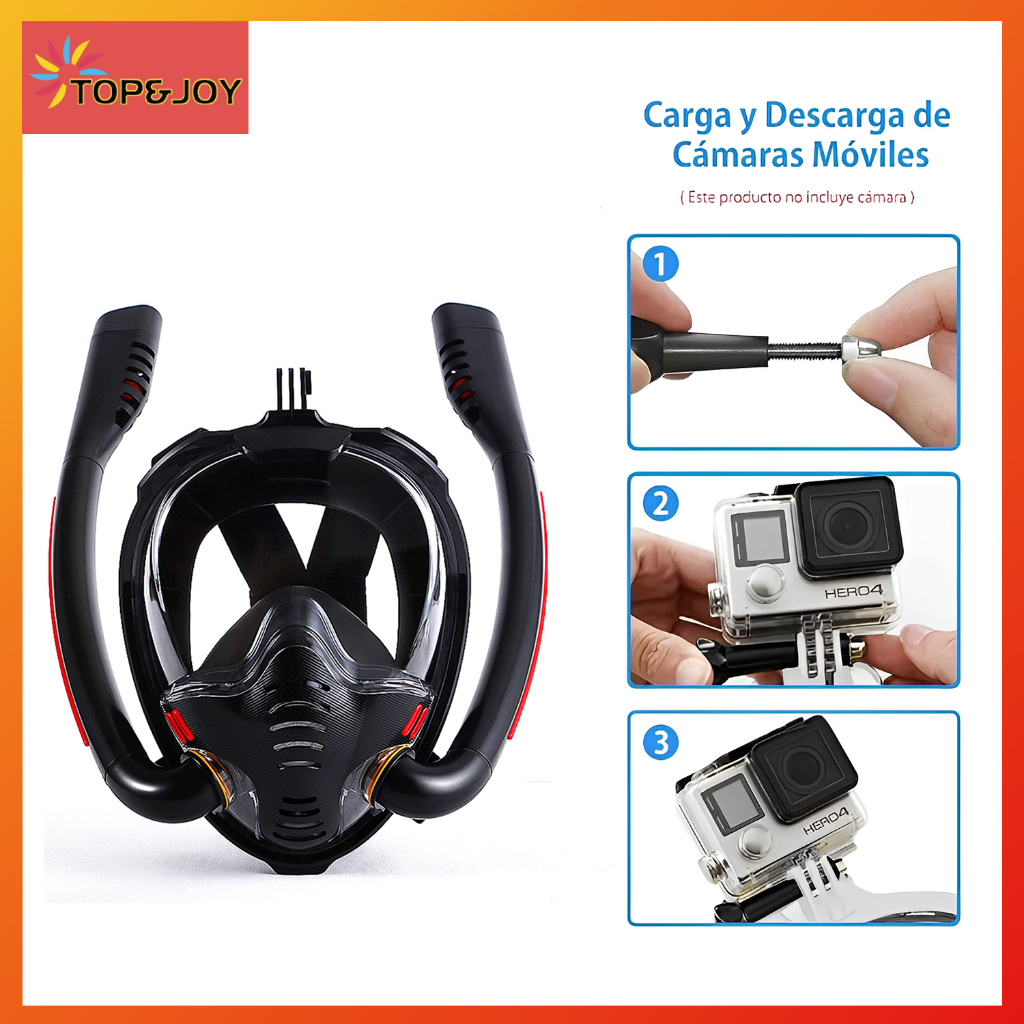 Máscara De Mergulho Snorkel Full Face Com Suporte Para Gopro Câmera De Ação Preto