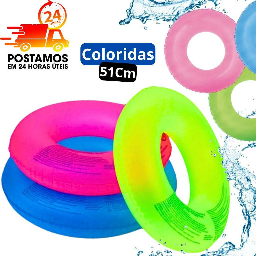 Kit 3 Bóia Circular Infantil Redonda Neon 53 cm Inflável para Criança para Piscina Praia Festa Pool Party