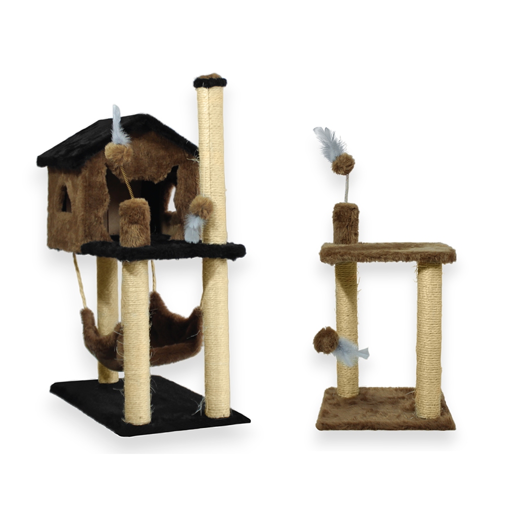 Kit Arranhador Para Gato Casa Com Rede e 2 Brinquedos + Poste com Base - Miupetz Store