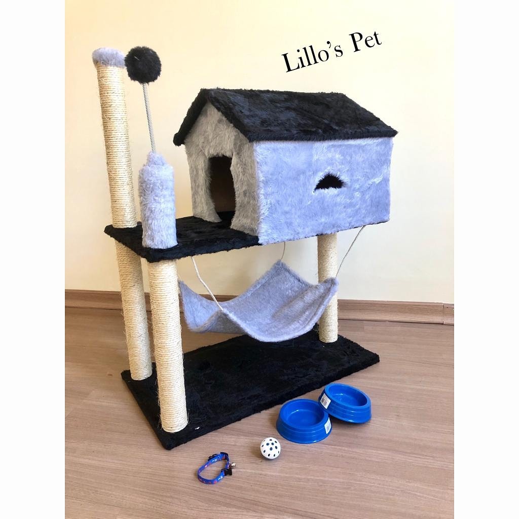 Kit Cama Para Gatos Pets Nuvem Macia Com Zíper Arranhador Casa Dois Andares Com Rede Para Gatos Pets Animais De Estimação - MIU