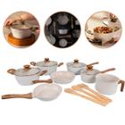 Jogo Conjunto De Panelas 10 Peças Indução com Utensílios Frigideira Revestimento Cerâmico