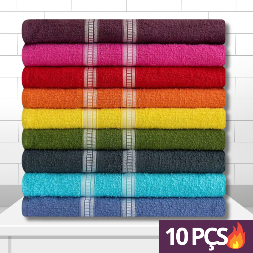 Kit 10 Toalhas de Banho Popular 60x120cm: Secagem Rápida Alta Absorção e Melhor Custo-Benefício