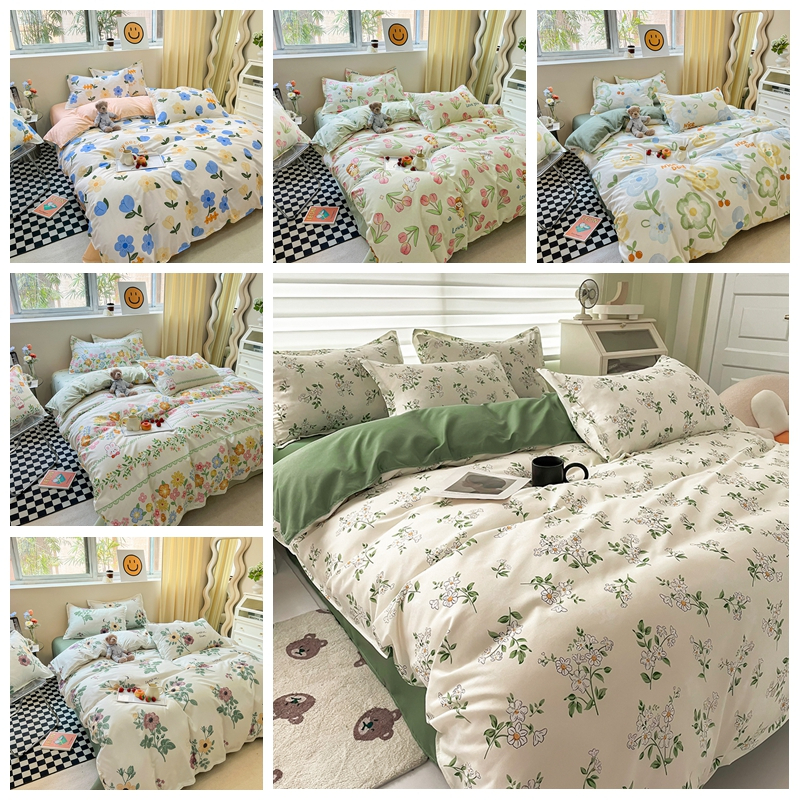 【 MY Estoque Pronto 】 Floral Conjunto De Roupa De Cama Série Para queen/Dobule Tamanho Fronha Verde/Azul murah Solteiro 3 Em 1 Lençol Rei cadar tilam