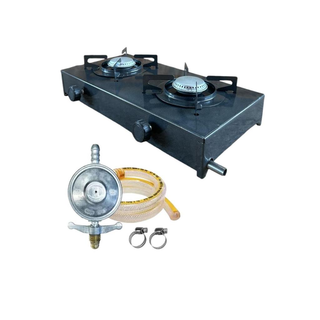 Fogão Cooktop De Mesa Portátil A Gás 2 Bocas camping com mangueira e regulador de gás GLP botijão