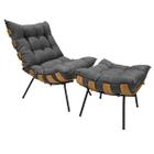 Poltrona Costela com Puff Sala de Estar Linho Cinza - Lyam Decor