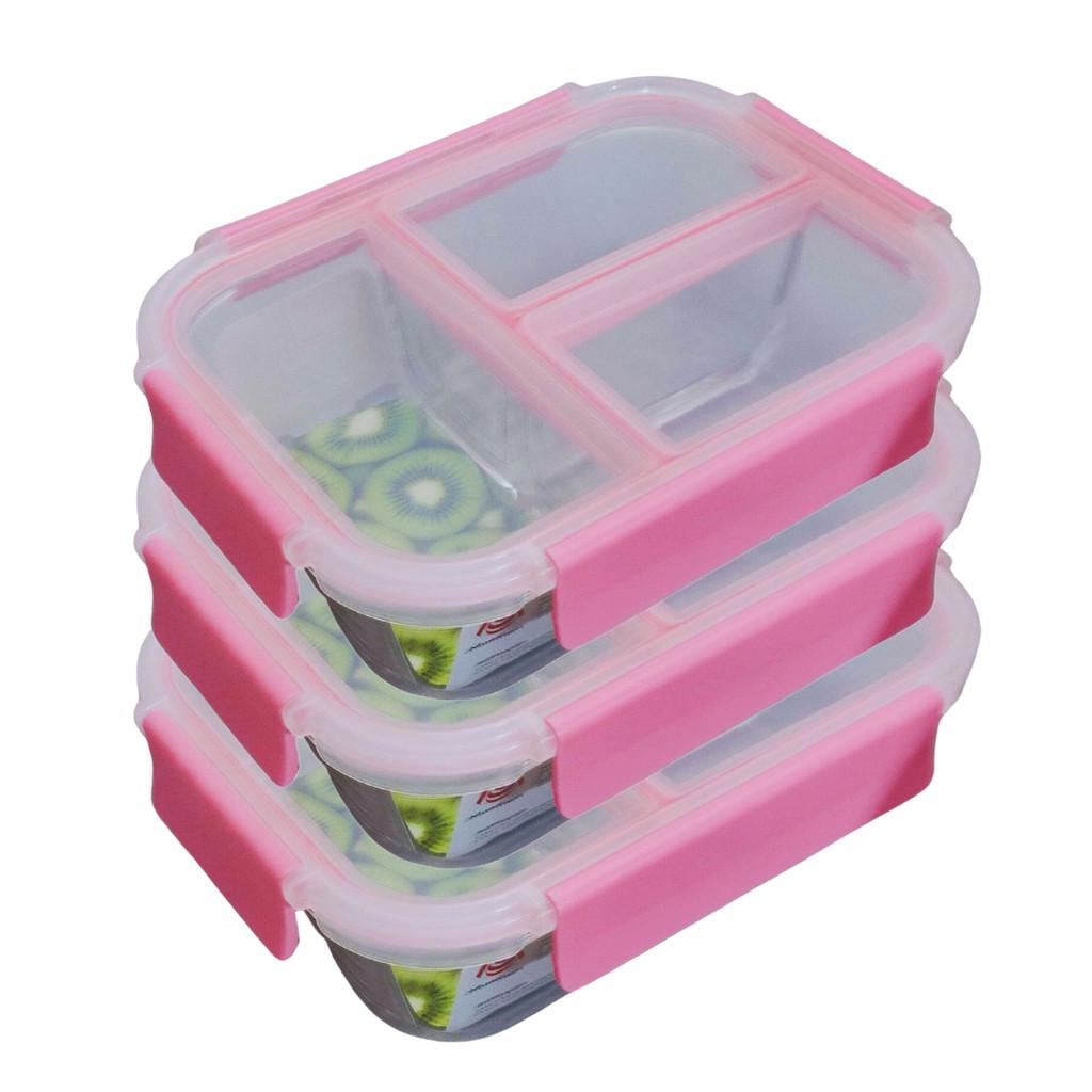 Marmita de Vidro Kit 3 Pote Hermético 3 divisórias Tampa com Trava Geladeira Freezer Micro Cozinha